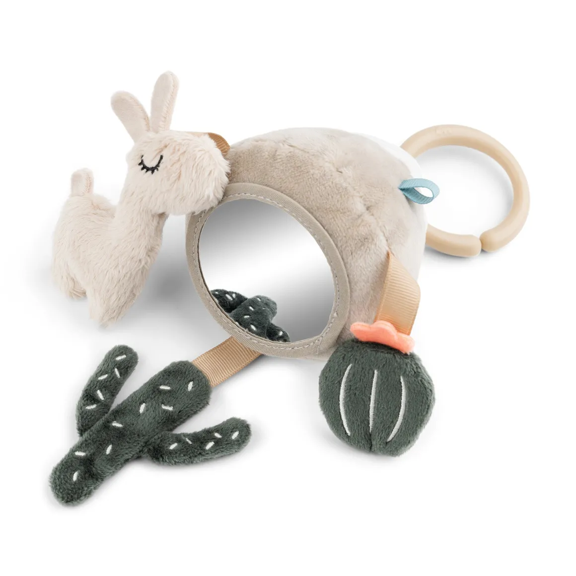 Din baby vil nyde knitre-lydene fra de dejlige kaktusser, den søde rangle fra det sneklædte bjerg og den bløde, sensoriske Lalee. Det lille spejl er en sjov funktion, som vil få din baby til at smile til den lille søde, der smiler tilbage.
