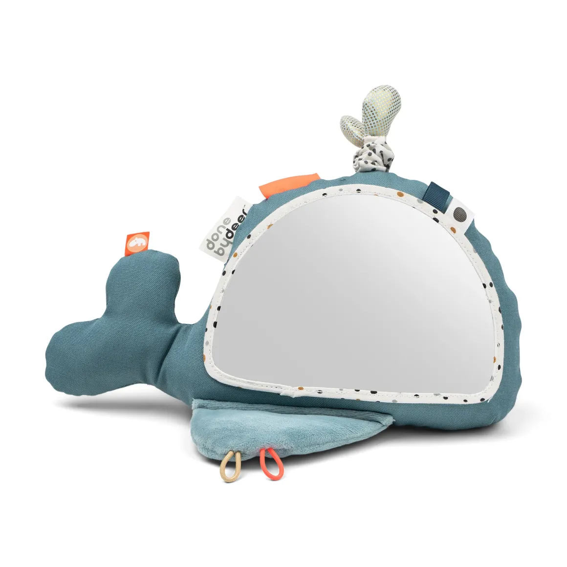 Spejlet, farverige mærker, taktile detaljer, knitre- og klokkelyde stimulerer de små sanser. Lad de små trække i vanddråberne på Wallys hoved og mærk hvordan hele hvalen vibrerer eller opdag hvordan Wallys fiskeven gemmer sig under hvalens finne. Wallys mange funktioner understøtter dit barns udvikling fra aktivitet på mave til siddende leg.