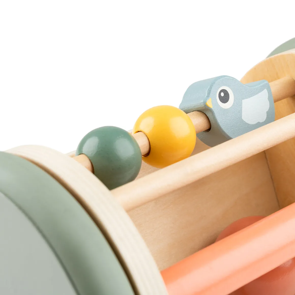 Dette legetøj er fremstillet af ansvarligt indkøbt træ med vandbaseret, sikker maling og sikrer både underholdning og sikkerhed for dit barn. Gør det sjovt for dit barn at lege med dette Aktivitets- & rullespejl, der kombinerer udforskning, bevægelse og visuelt engagement.