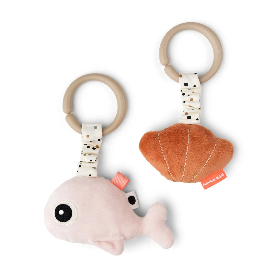 Aktivitetsophænget med Sea friends er den perfekte legetids- og on-the-go underholdning for din baby. Fastgør de to stykker legetøj til barnevognen, aktivitetsstativet eller din cozy lounger for at skabe skøn underholdning for dit barn.