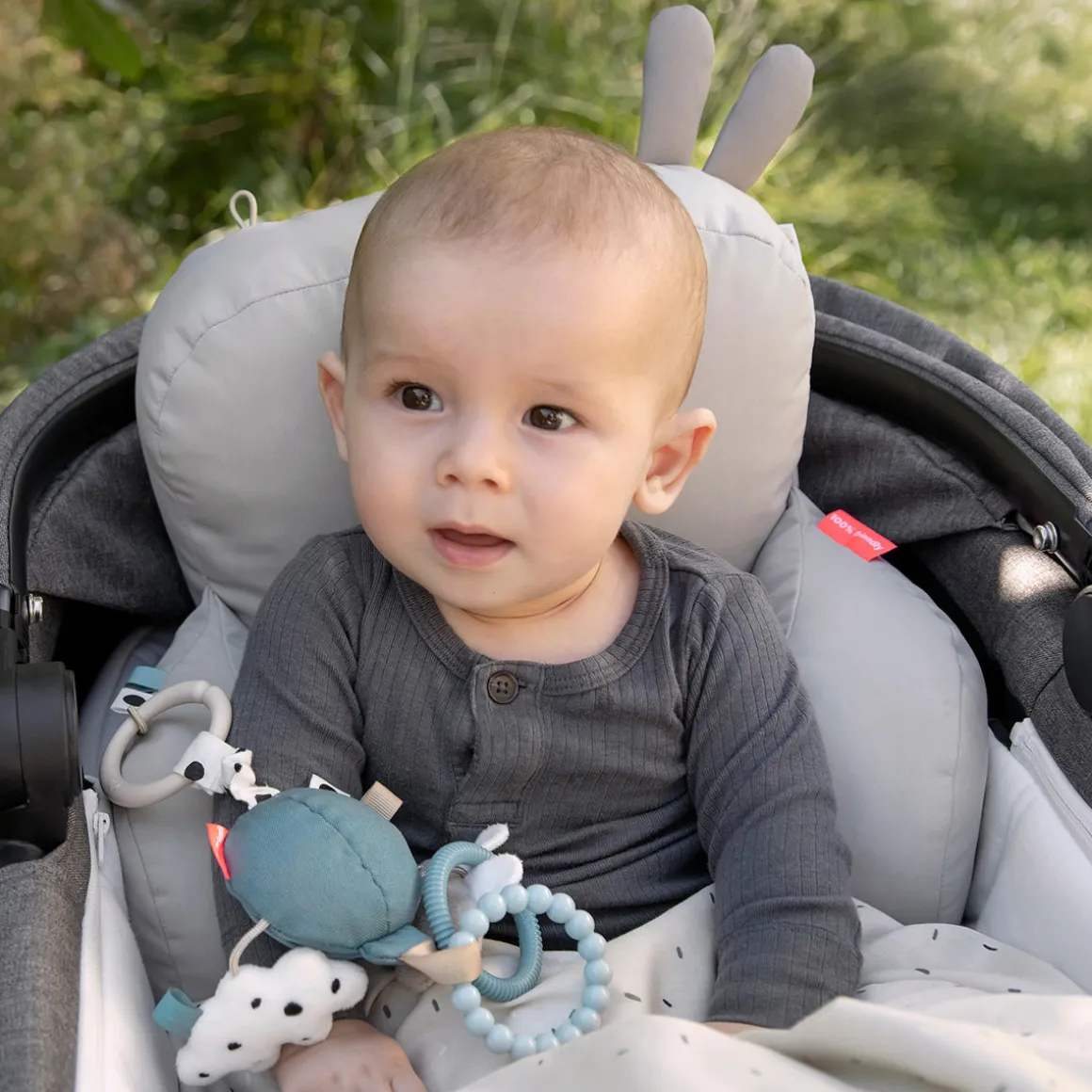 Sjove lamaører, praktiske elastikstropper til fastgørelse af sutter eller legetøj og sjove tags vil underholde dit barn, når I er out & about.