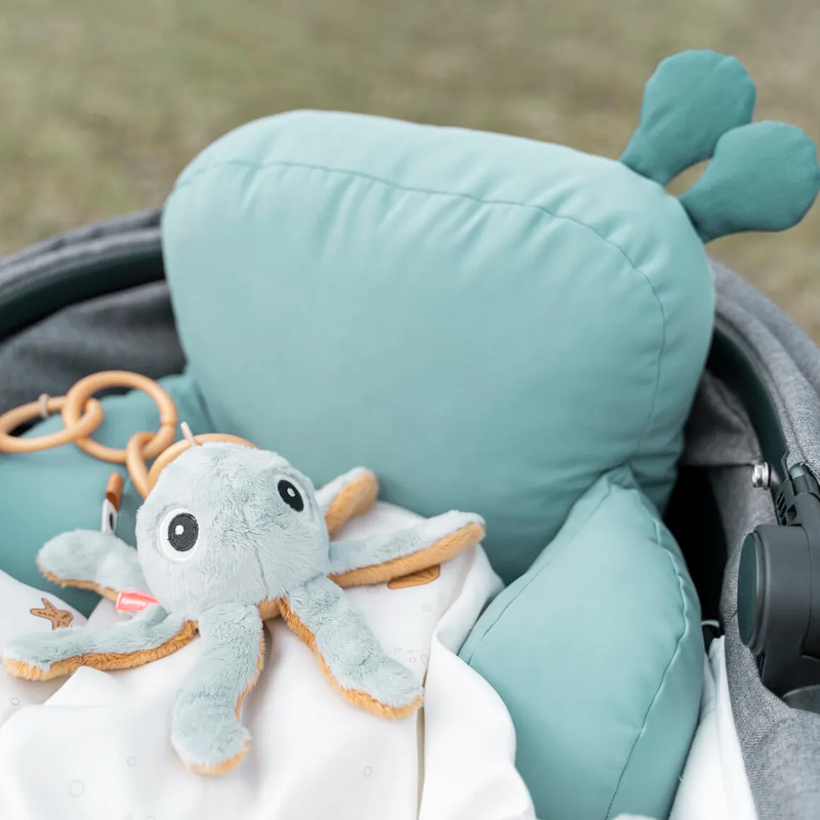 Kom og slentre med mig! Når dit barn er klar til at udforske verden fra barnevognen, giver Barnevognspuden Raffi støtte og gør det behageligt at sidde op og opdage verden, mens I går på gaden.