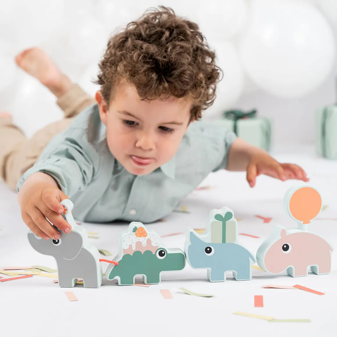 Brug denne charmerende parade som et dekorativt midtpunkt eller et fødselsdagstog. Paraden er lige så sjov at lege med, som den er at vise frem, og børn vil elske at lege med Deer friends og tælle tallene, mens de fejrer.