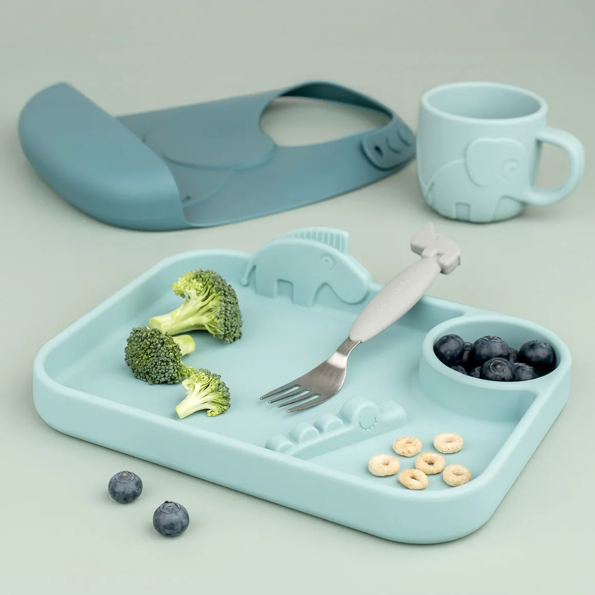 Dette produkt er testet og overholder den europæiske standard for børnebestik EN 14372 og EU-forordningerne om fødevarekontakt 1935/2004 og den tyske LFGB §30 og 31 for silikone.