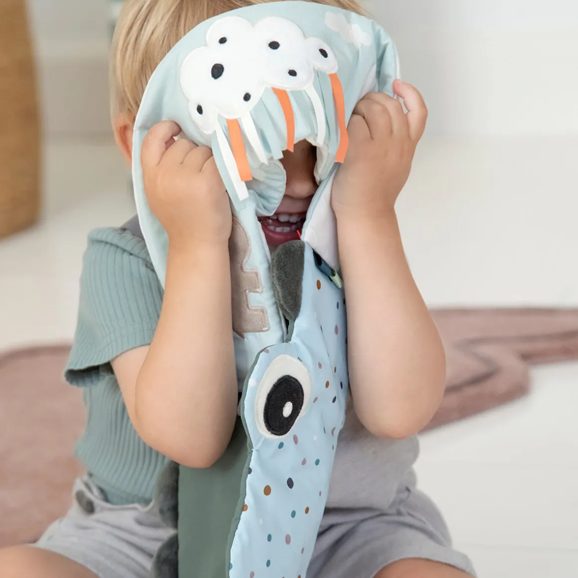 – De mange sanseflader, knitre-lyde og forskellige teksturer og overraskende elementer sætter gang i dit barns fantasi og kreativitet og holder det beskæftiget.