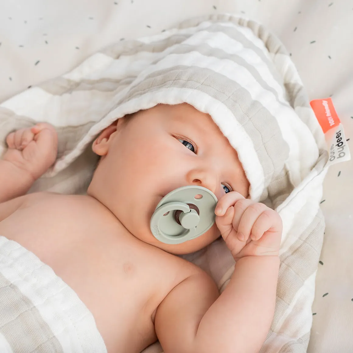 Hættehåndklædet med brede striber er perfekt til at pakke de små ind i og tørre dem efter et dejligt bad. Det bløde håndklæde af økologisk bomuld i flere lag er let, glat mod huden og tørrer hurtigt på en tur til stranden.