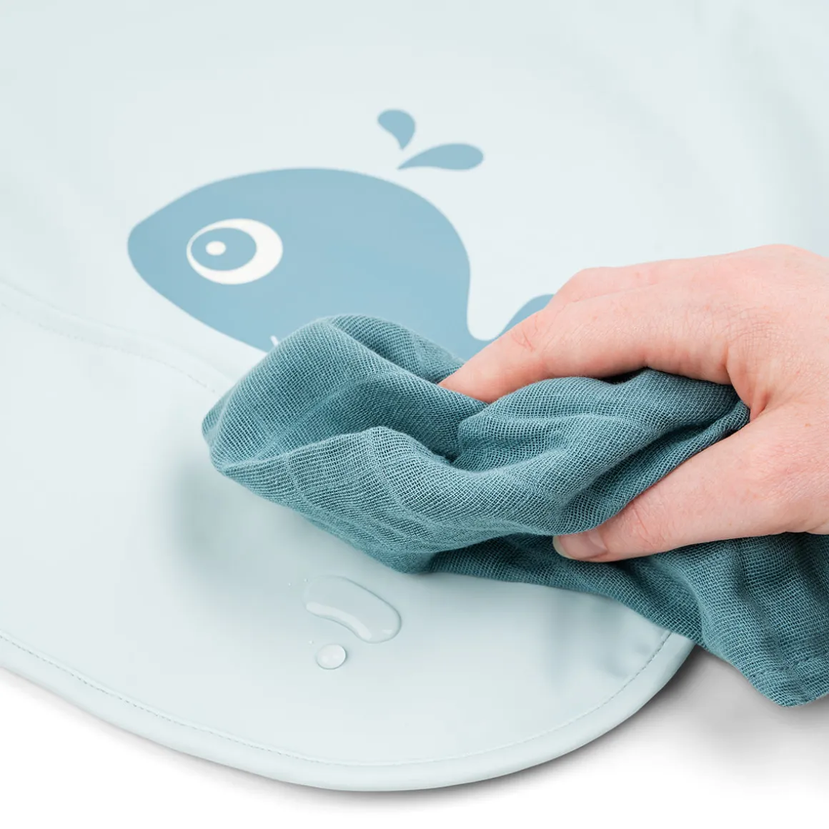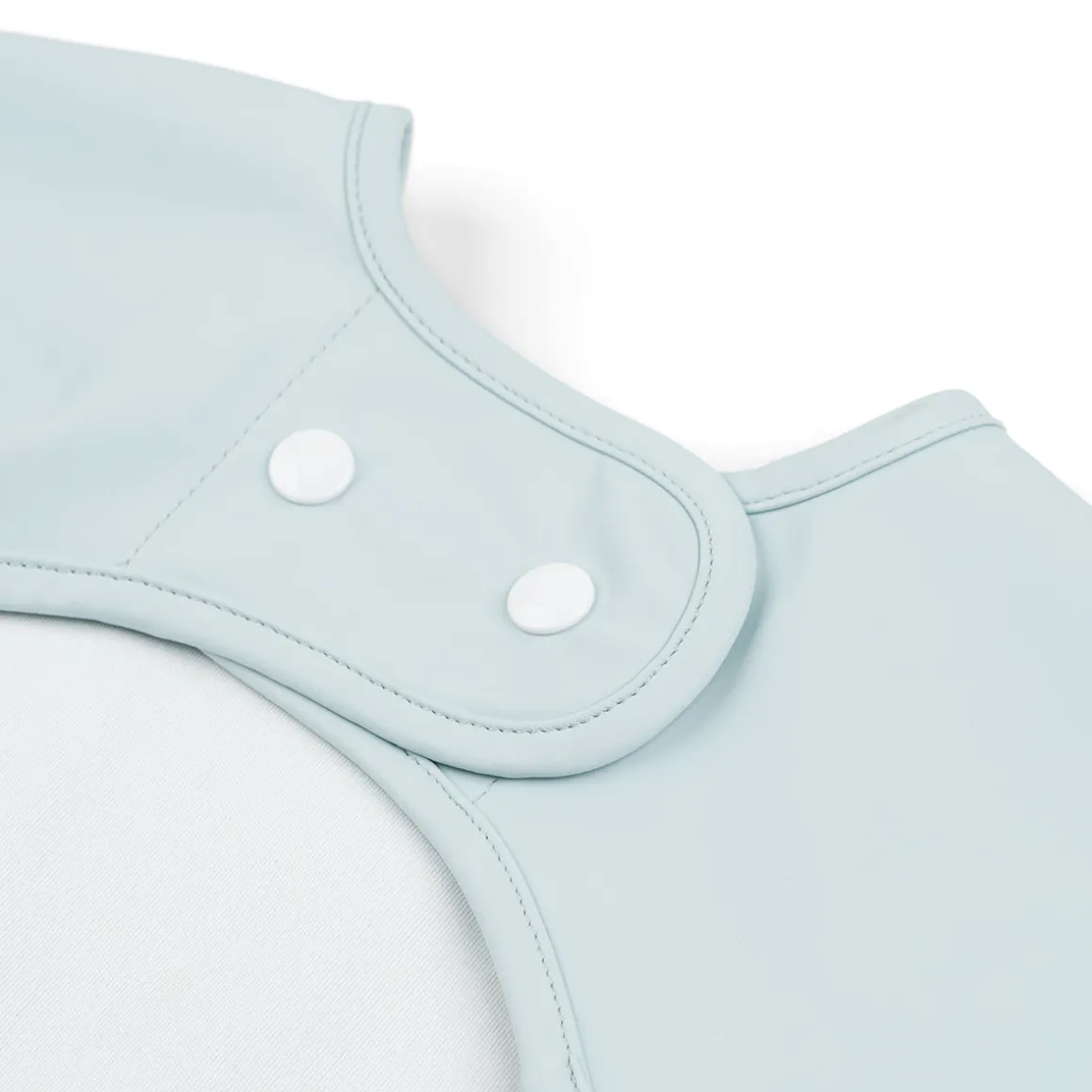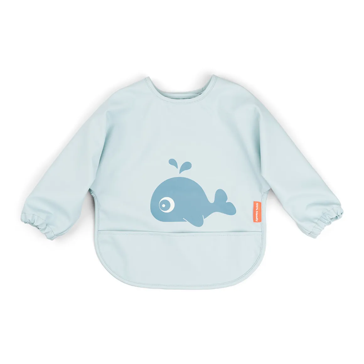 Den bløde hagesmæk er vandtæt og har praktiske elastiske ærmer, som holder den lille tør. Den er nem at tørre af og sparer dig for en masse rengøringstid.