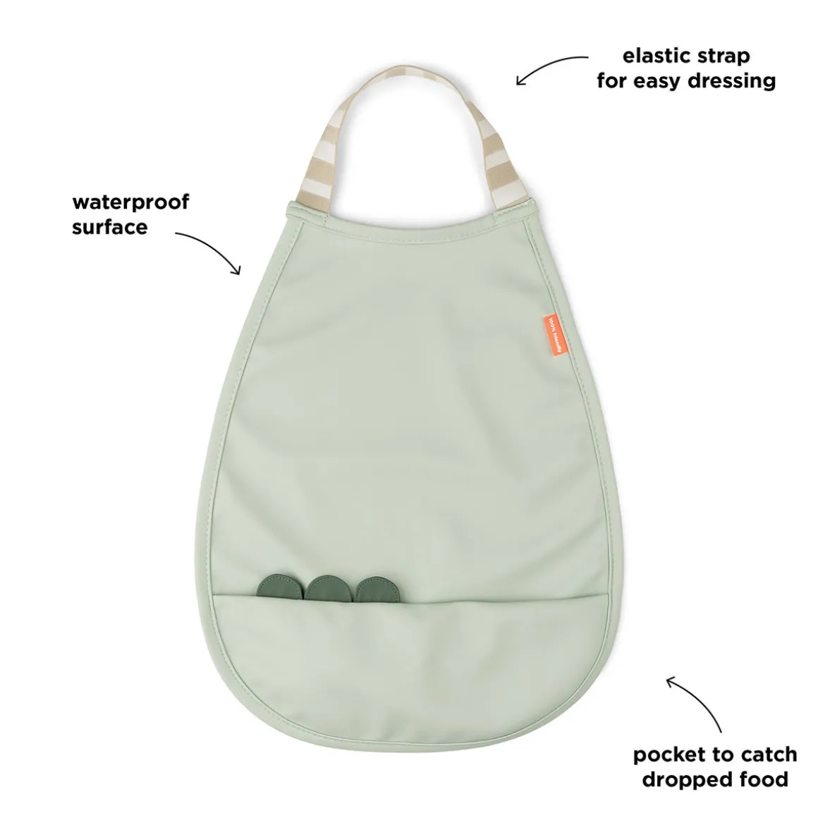 Gør måltidet mindre rodet med en praktisk vandtæt pull-over hagesmæk. Den er nem at tørre af og har en smart lomme til at fange den mad, der ryger ud. Det sparer dig for en masse rengøringstid.