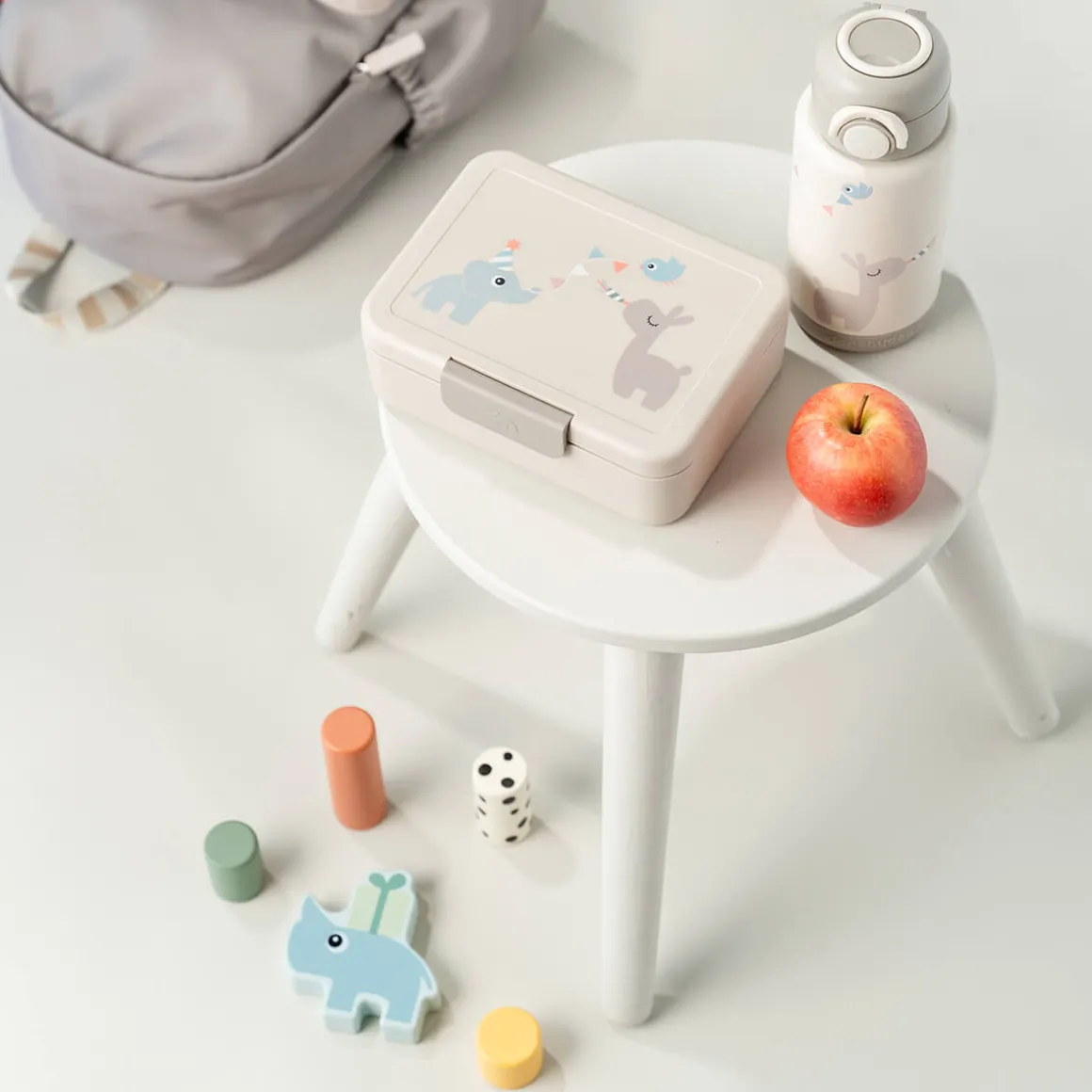 Madkassen har en fin sandfarve og er dekoreret med Elphee, Lalee og Birdee – vores muntre Deer friends, som altid er klar til at gøre frokosttid til en legende fest.