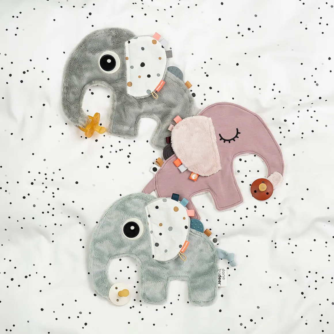 – Hyggeligt, gråt nusseklud i form af Elphee er en perfekt følgesvend til din baby