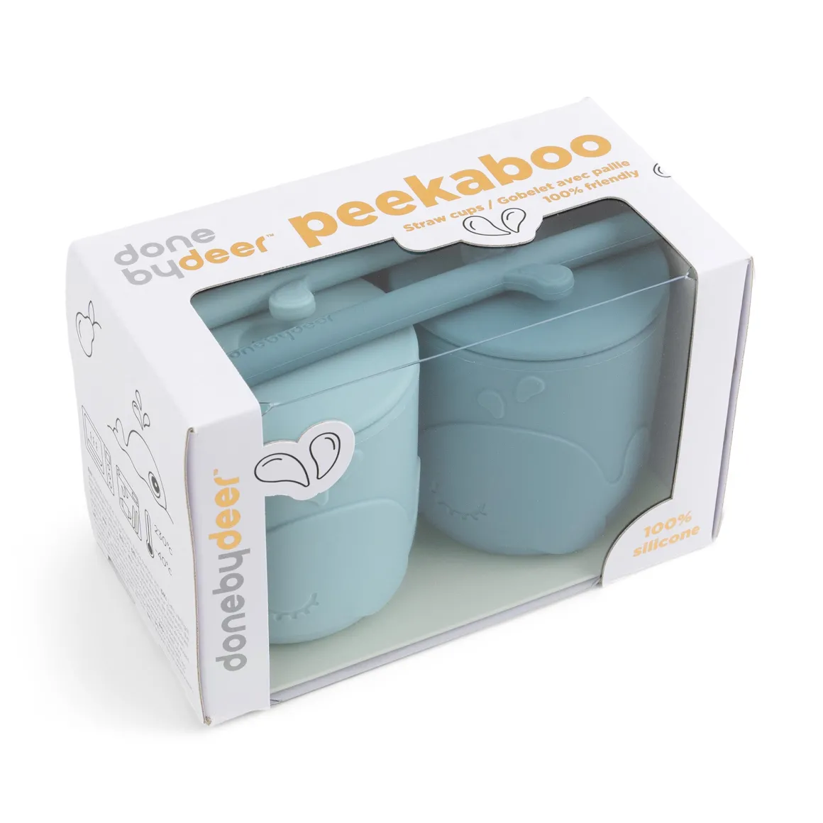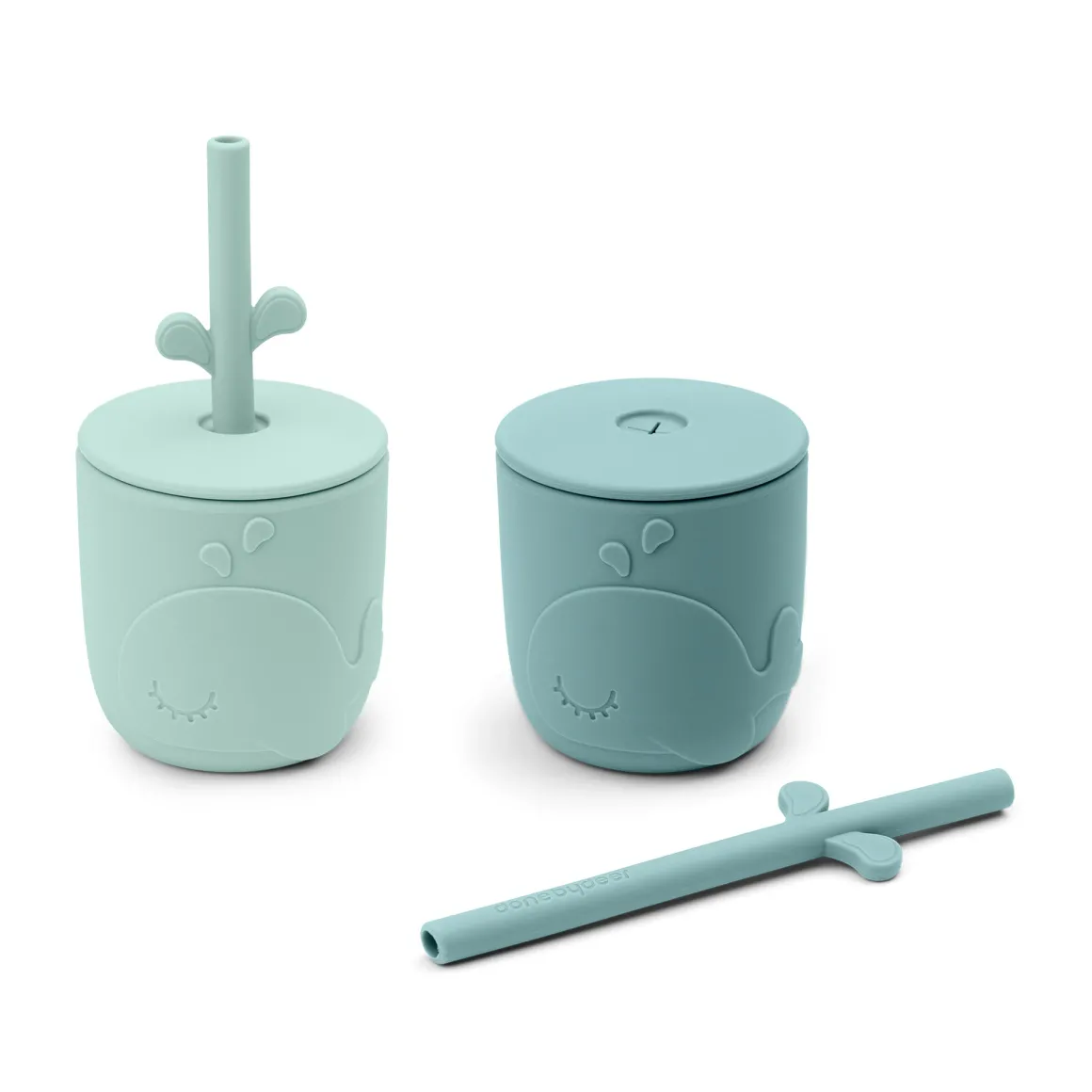 Kopperne med sugerør i 2-pak er i to blå nuancer. De søde sugerør passer perfekt i alle små børns kopper uden at vippe, og lågene kan bruges til de Peekaboo tudkop. også.