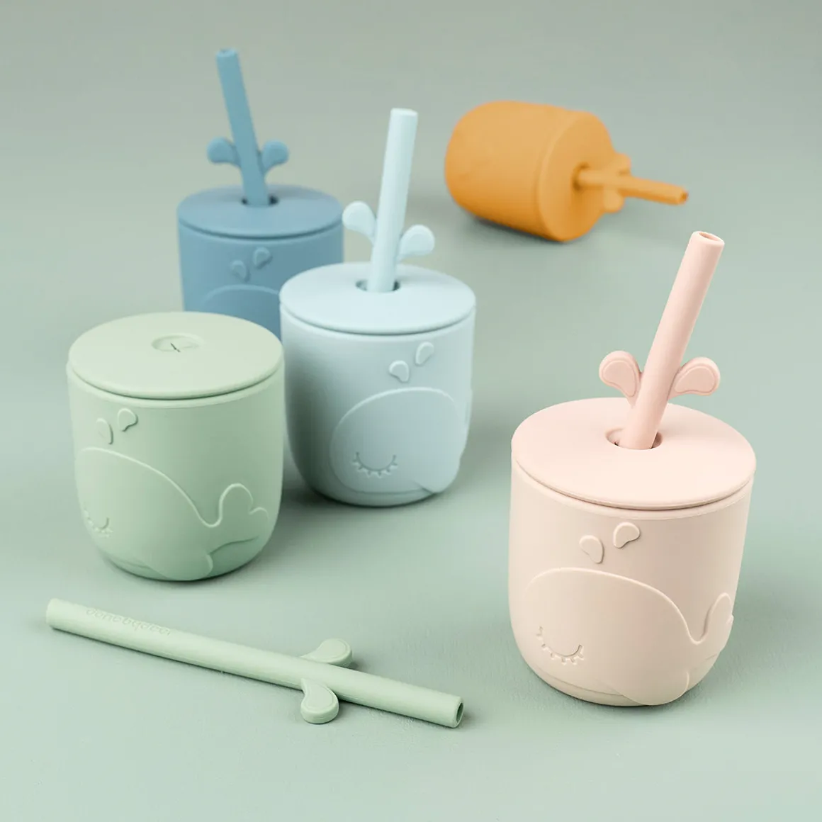 De søde Wally-træningskopper er lavet af fødevaregodkendt silikone, hvilket gør dem brudsikre og tilføjer grebvenlige funktioner. Tåler opvaskemaskine og kan bruges i ovn, mikroovn og fryser.