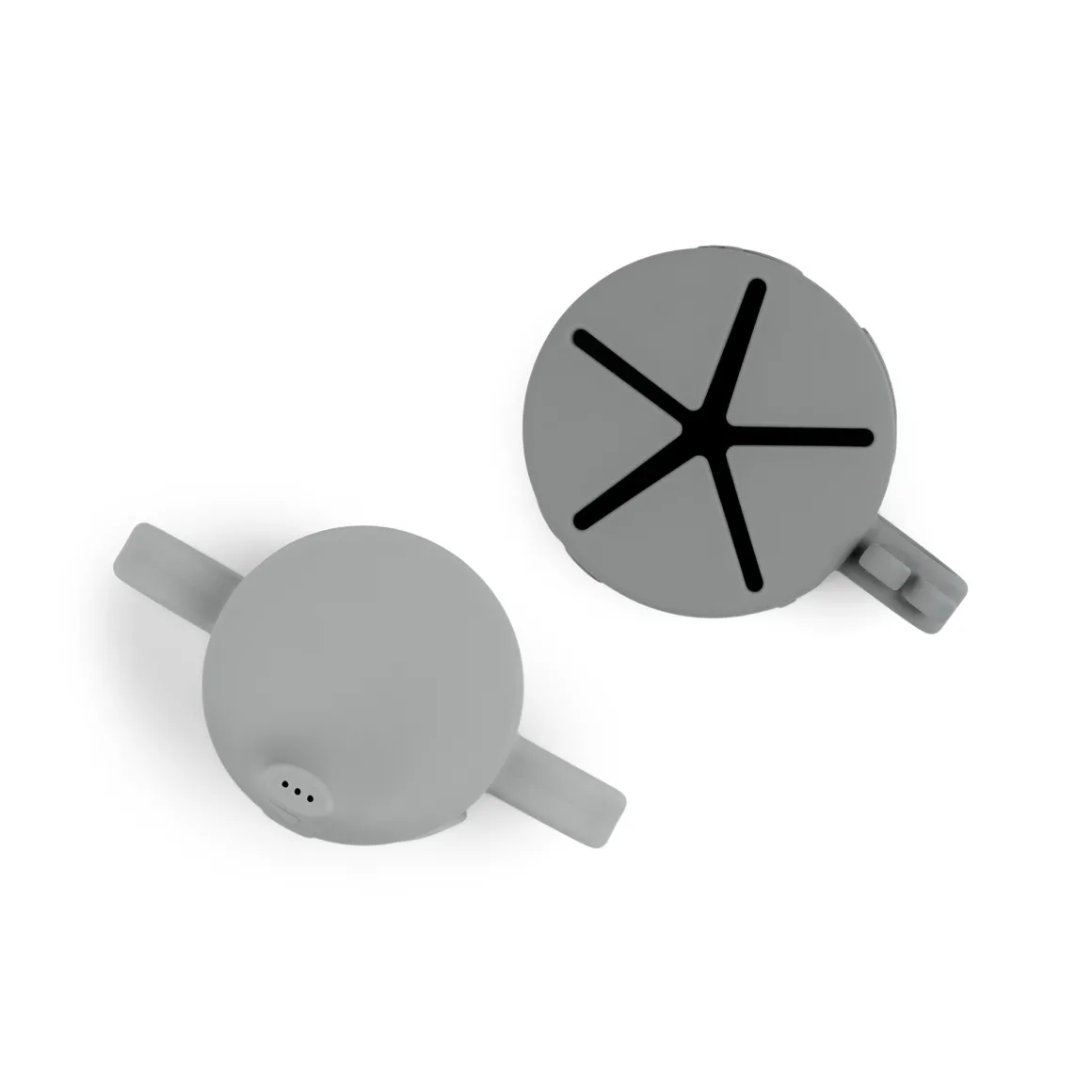 Snackkoppen giver nem adgang til frugt, små udskæringer og små snacks, samtidig med at den holder snacksene inde, selv hvis koppen vælter. Det praktiske låg holder oprydningen på et minimum, og to håndtag sikrer et stabilt greb.