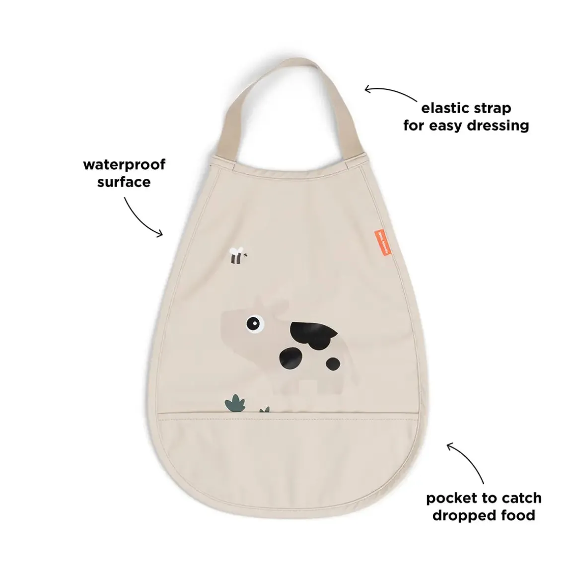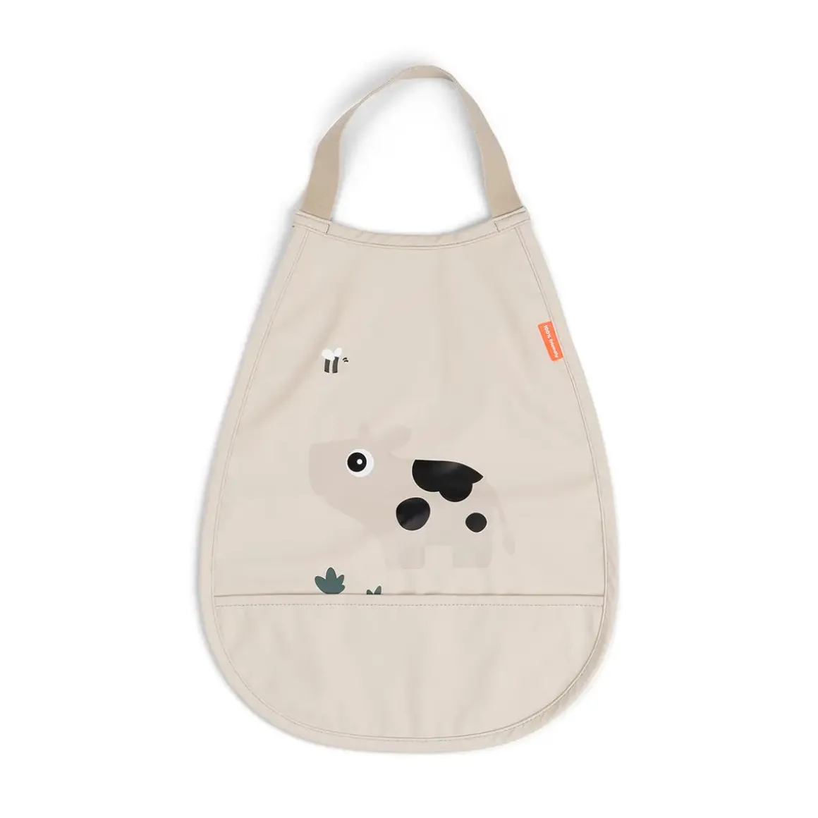 The elastic strap allows for quick dressing, while the handy pocket catches dropped food, reducing mess. In a soft sand colour with a charming Dotti motif, this bib adds a playful touch to every meal.