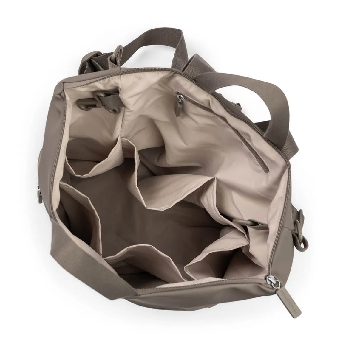 Fabric: 100% recycled polyester with PU coating. Lining: 100% recycled polyester. Changing pad: 100% recycled polyester with PU coating. Filling: Polyester fibres.
