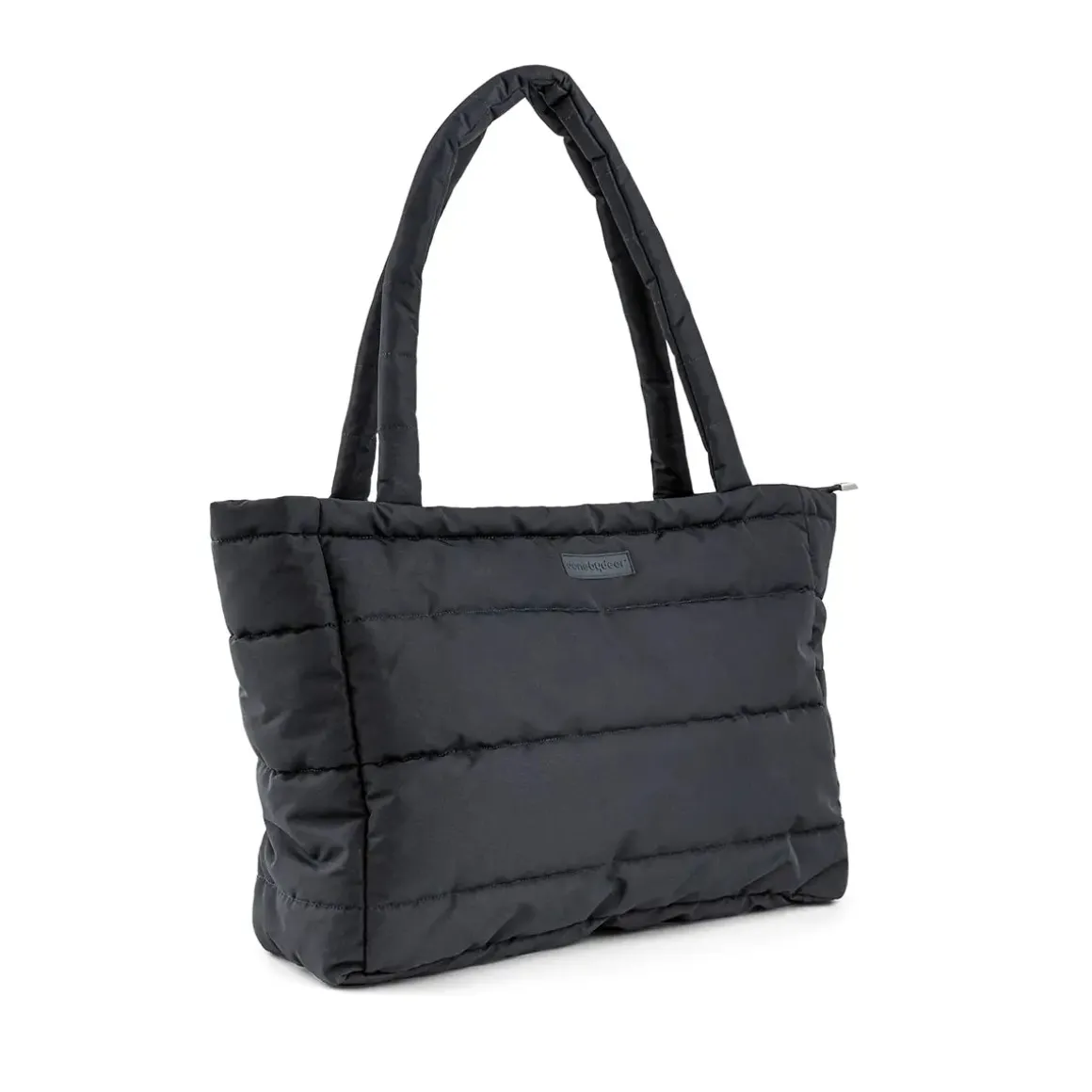 Denne stilfulde sorte quiltede tote bag er perfekt til alle de ekstra ting, du og dit barn har brug for på farten. Med en sikker lynlåslukning forbliver dine ejendele sikre og sunde, mens den holdbare, vandafvisende overflade sikrer, at den kan klare de daglige eventyr.