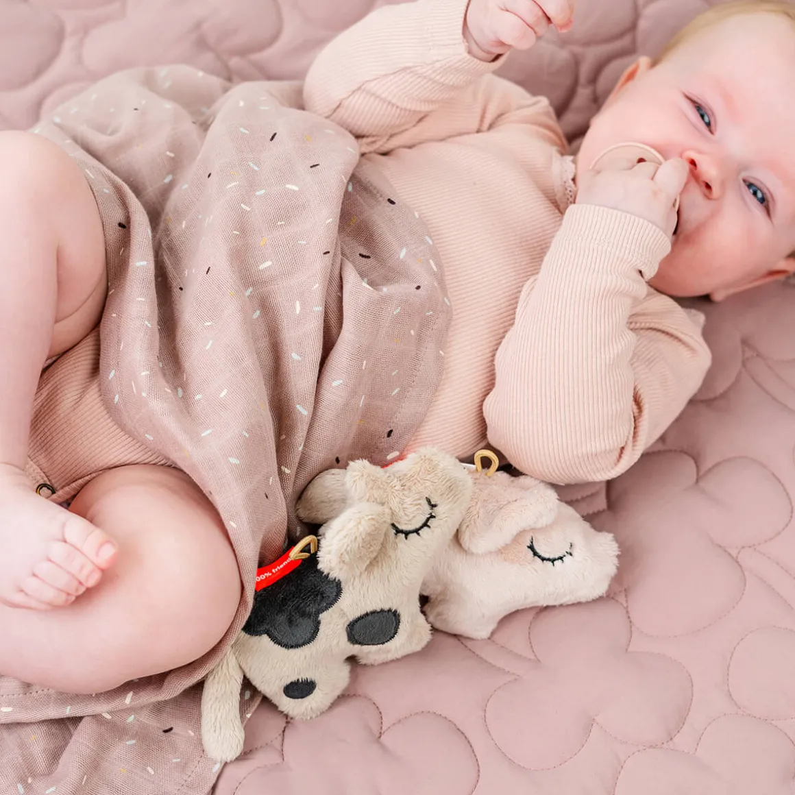 • Dotti i fin sandfarve med kontrastfarver for visuel stimulering