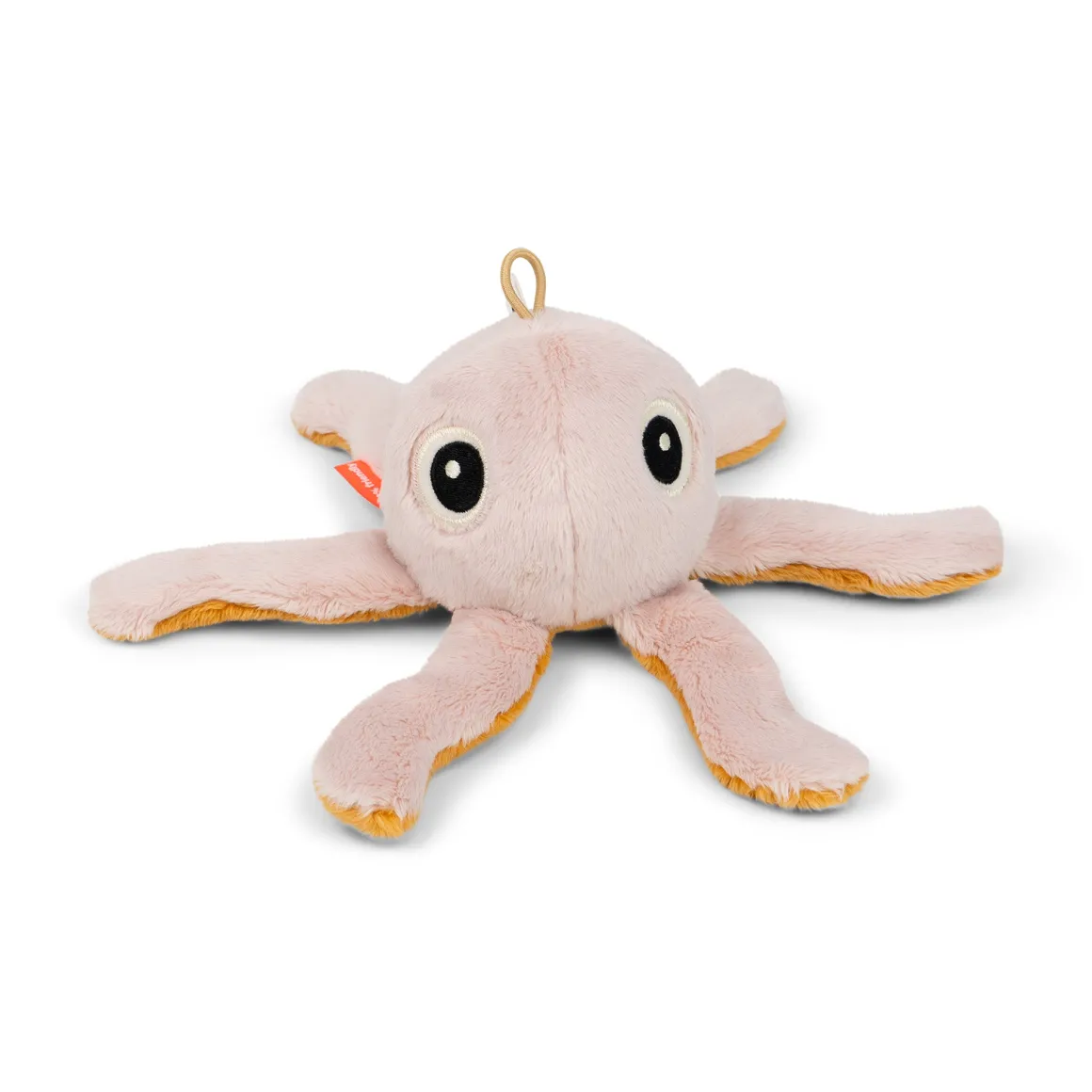 Med den elastiske løkke er det nemt at fastgøre den lille rangle til en legetæppe, klapvogn, autostol eller aktivitetscenter ved hjælp af et legetøjslink. Den superbløde Jelly Rangle har en blød pudderfarve på ydersiden og en varm sennepsfarve på indersiden.