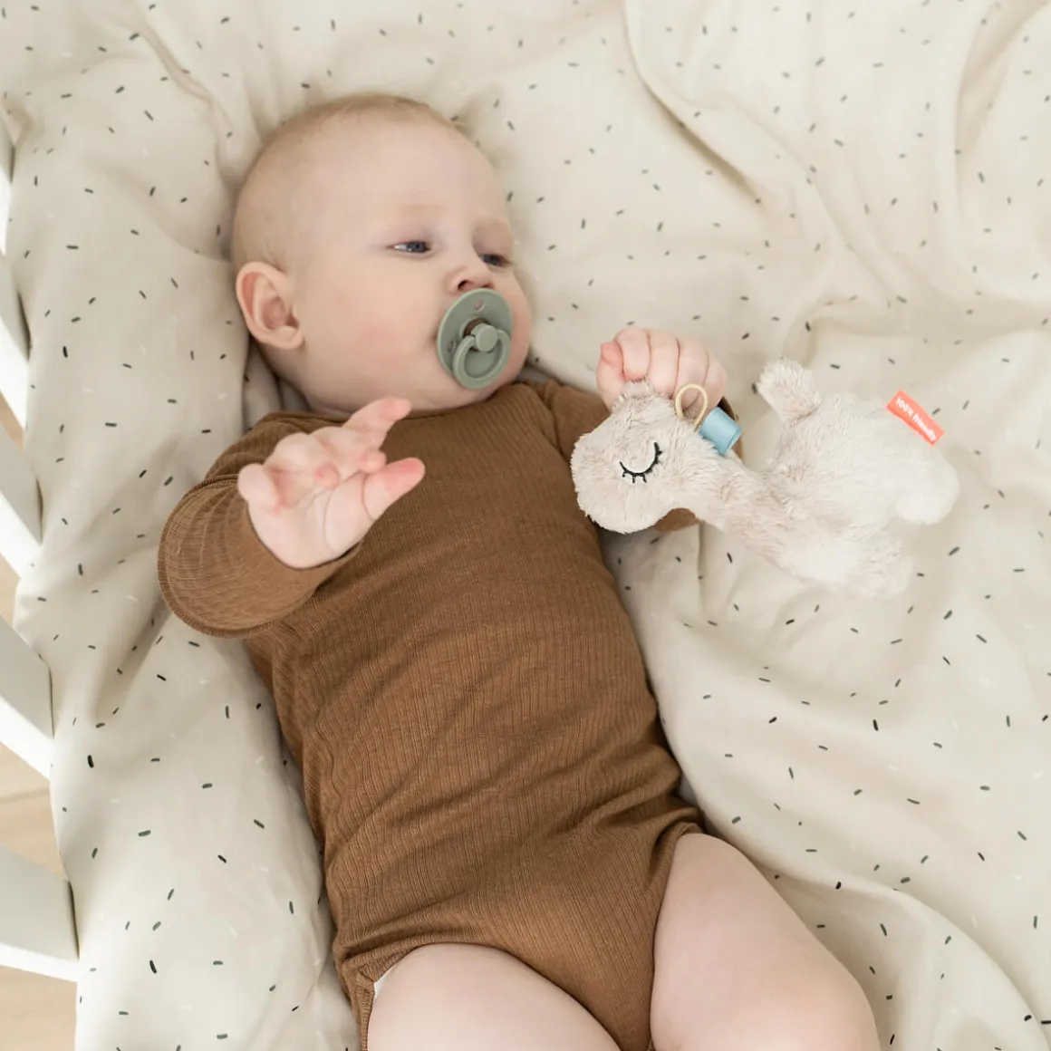 Lalee elsker at lege og underholde de mindste. Denne lama-rangle er et perfekt første stykke legetøj, som små fingre kan gribe fat i – klar til at opdage de sensoriske funktioner og søde lyde.