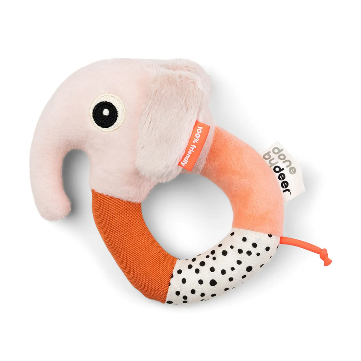 Børnene vil nyde en sjov leg med Elphee. Rund ranglen har pudder-, koral- og papaya-farvede elementer og et element med legende prikker.