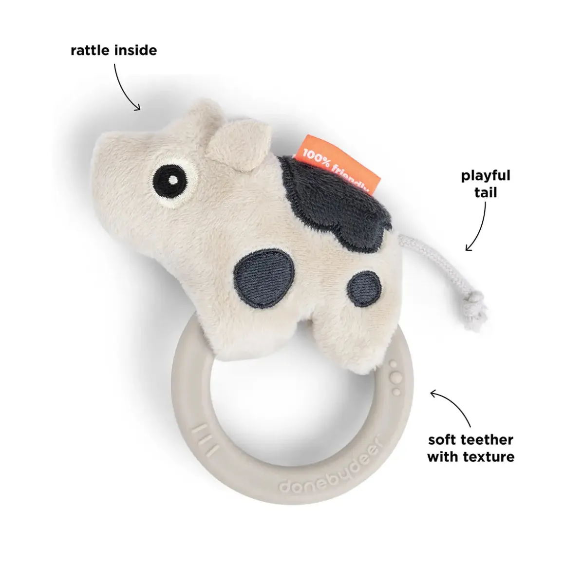 Dotti, in a soft sand colour with contrasting details, offers gentle visual stimulation, making this teether a great companion for your baby’s development. Whether it’s calming sore gums or keeping little hands busy, this sensory rattle is a must-have for every stage of your baby’s growth.