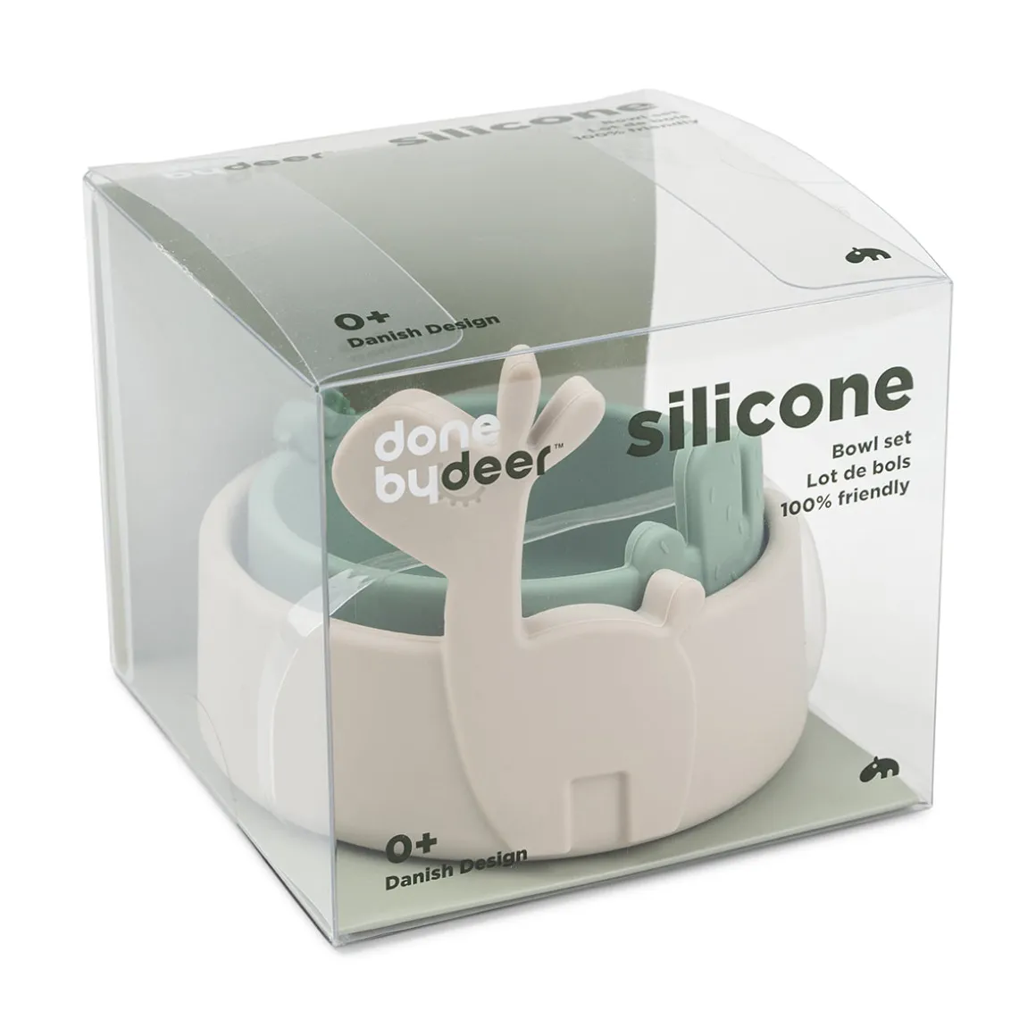 Når skålene ikke er i brug, passer de perfekt ind i hinanden. Skålen er lavet af fødevaregodkendt silikone, hvilket gør den brudsikker og velegnet til brug i mikrobølgeovn, ovn, fryser og opvaskemaskine samt giver den skridsikre egenskaber.