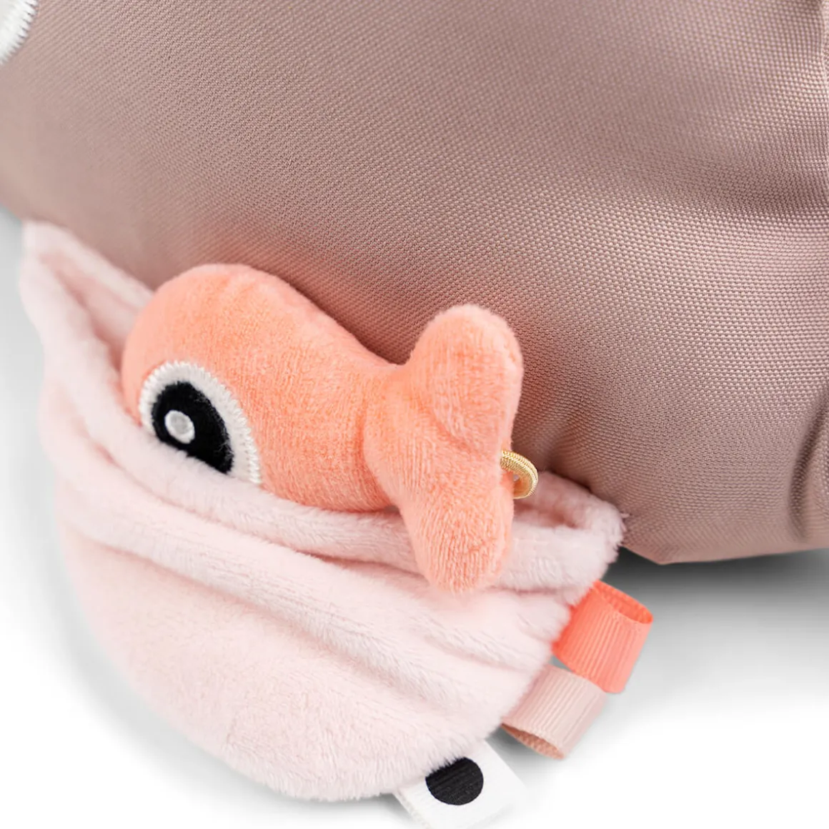 Den pudderfarvede hval komplementeres af en lille, koralrød fisk. Gulvspejlet er fyldt med sand, som sørger for at det altid står solidt plantet på gulvet.