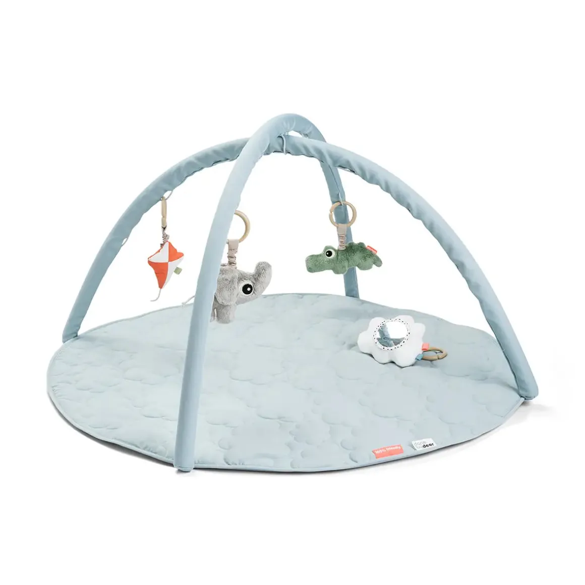 The four hanging toys can be adjusted to match your baby’s developmental stage or detached for independent play, perfect for little fingers to discover. The soft quilted mat, adorned with a cute cloud pattern and thick wadding, ensures a cosy and comfortable space for playtime.