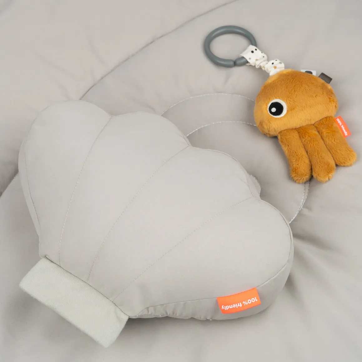De mindste kan ligge behageligt på den bløde kuglefiskformede legetæppe og have det sjovt med Sea friends og de mange sanseaktiviteter og stimulerende funktioner. På Puffes bløde og bevægelige halefinne kan barnets finde ekstra støtte til mavetiden.
