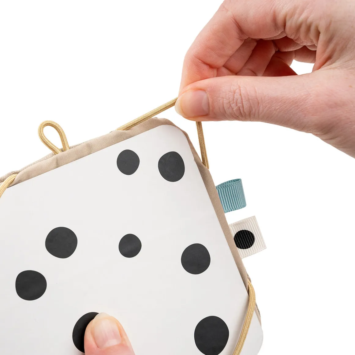 Den er alsidig i brug og kan hænges op i en aktivitetsbue, på et legetæppe eller placeres på gulvet til spændende mavetid. Løft dit barns tidlige visuelle udvikling med denne gennemtænkt designede, interaktive tekstilramme, der kombinerer personlig tilpasning med stimulerende elementer og skaber et dynamisk og berigende miljø lige fra starten.