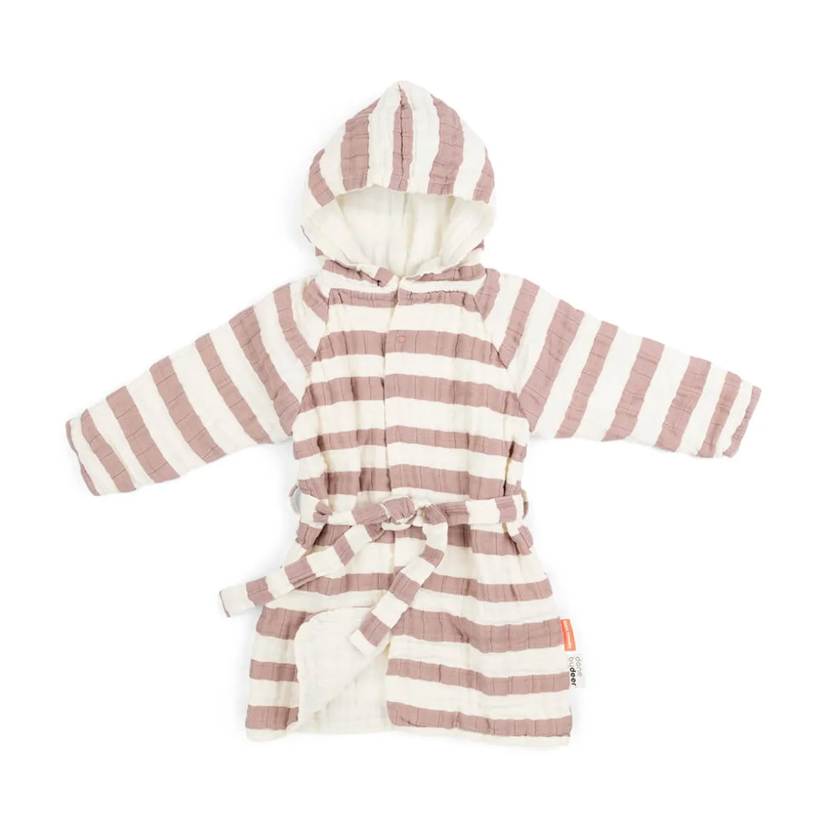 Den seje badekåbe med brede striber er et sandt must-have! Perfekt til hyggestunder på langsomme søndagsmorgener eller til at få dit barn tørt og varmt efter badet. Den bløde badekåbe er lavet af økologisk bomuld i flere lag, der er let og glat mod huden.