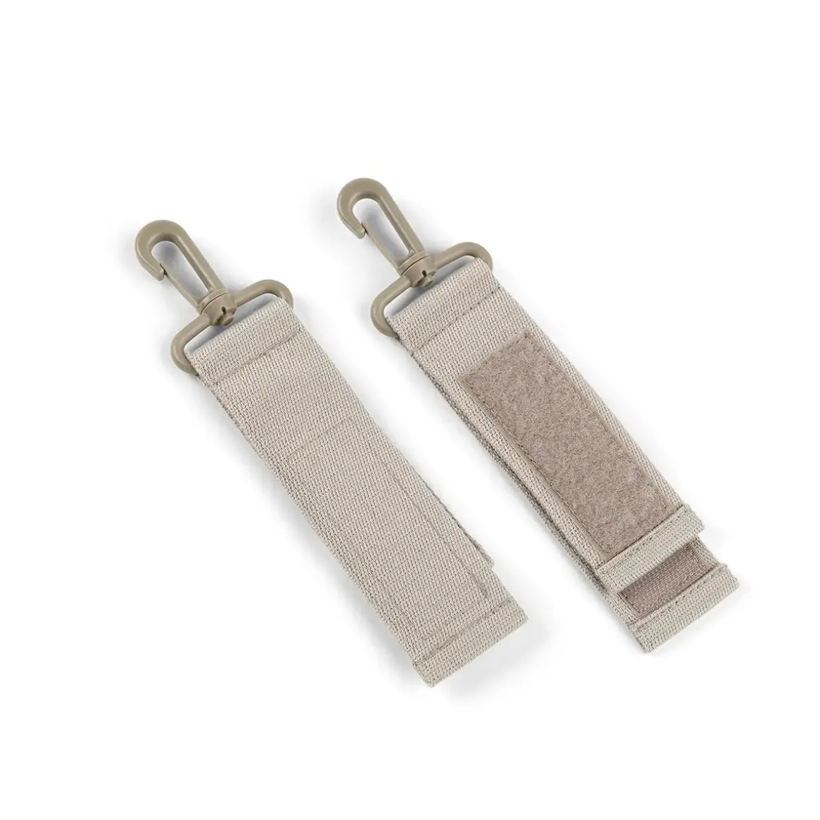 – Fastgør tasken til barnevognens håndtag ved hjælp af de medfølgende barnevognskroge