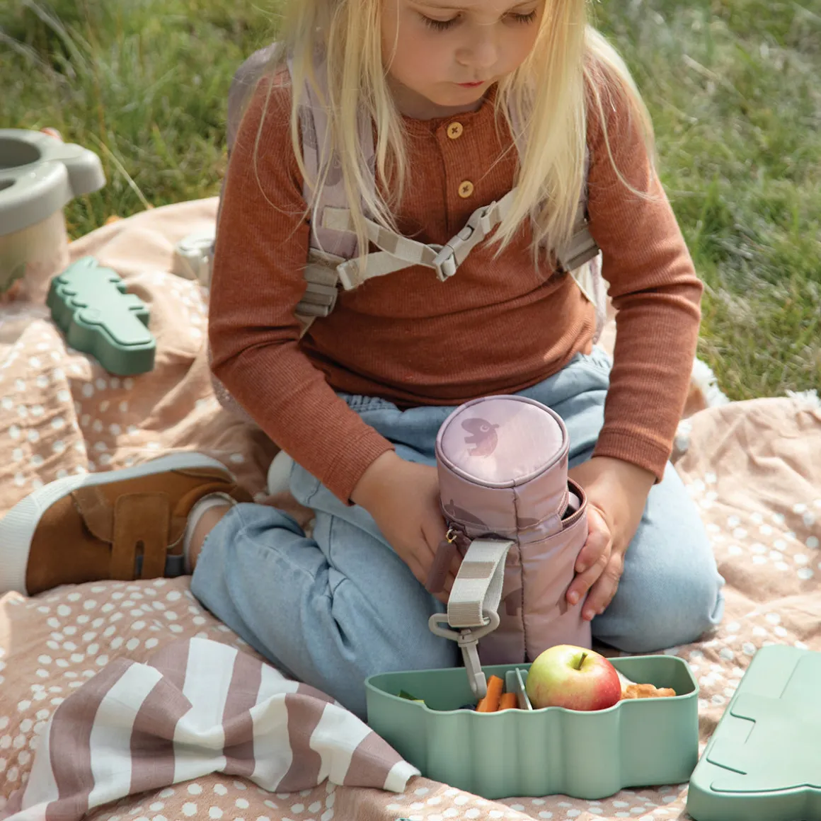 Børne termo drikkedunksholderen fra Lalee holder dit barns drikkelse kølig eller varm, når det er på farten. Det isolerende stof indeni sikrer, at væsken holder den ønskede temperatur i timevis. Done by Deer-flasker passer perfekt i flaskeholderen.