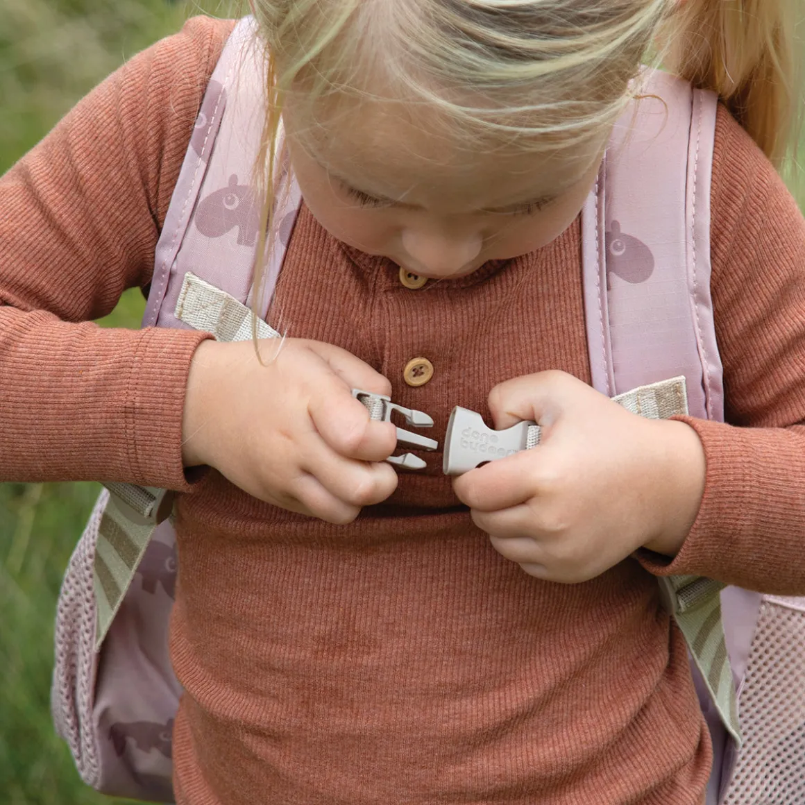 – Justerbare, polstrede skulderstropper gør den behagelig for dit barn at have på