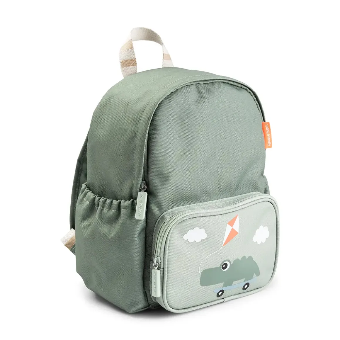 Den seje grønne rygsæk er dekoreret med Croco, der viser skateboardtricks – perfekt til små opdagelsesrejsende, der altid er klar til action og nye eventyr.
