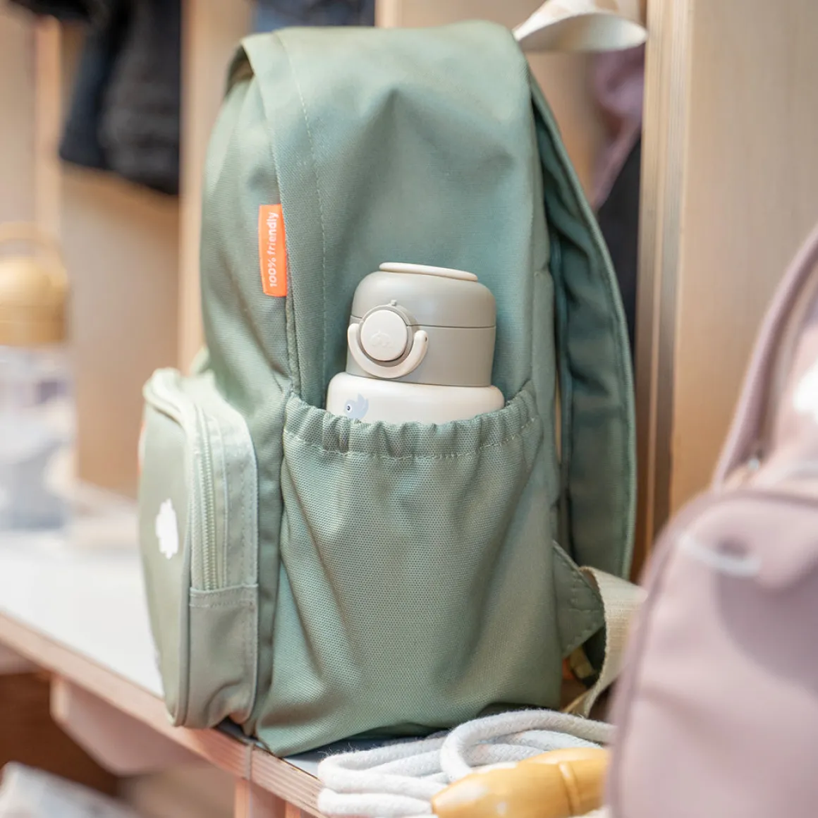 Med en blød, polstret ryg og justerbare stropper, der er lavet til små skuldre, er den behagelig at have på hele dagen. Der er en stor hovedlomme til alle deres skatte, en forlomme til hurtige snacks samt to sidelommer, der er perfekte til små flasker eller hemmelige fund. Et sjovt navneskilt med en af vores Deer friends giver et legende touch, mens den slidstærke, vandafvisende overflade kan klare hverdagens små spild og overraskelser.