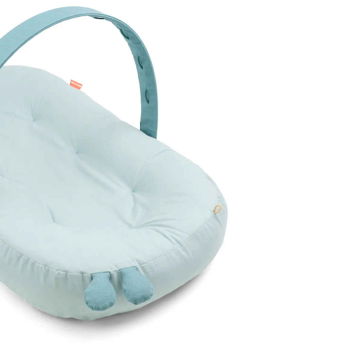 Liggestolen har en aftagelig aktivitetsbue til fastgørelse af din babys yndlingslegetøj. Når din baby vokser og begynder at udforske verden, kan du bruge de bløde kanter som nakkestøtte, så barnet kan følge med i mors og fars bevægelser.