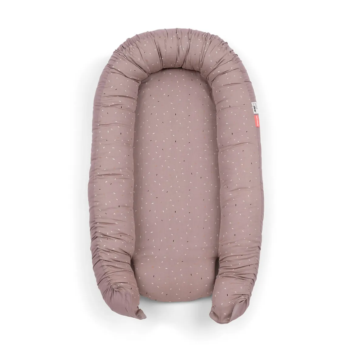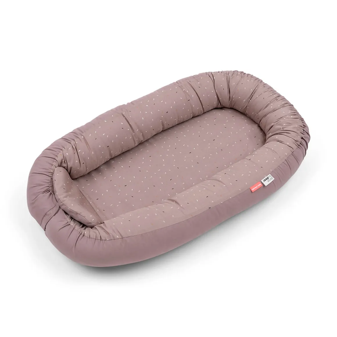 Lys Pudder cozy nest er drysset med festlig confetti på indersiden og har en solid pudderfarve på ydersiden. Babynesten er lavet af blødt bomuld med polyesterfyld og har en blød skummadras i ét stykke.