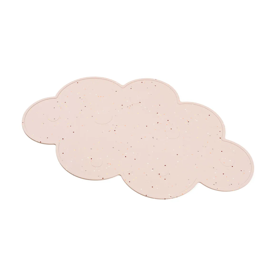 Praktisk skyformet dækkeserviet i en sød pudderfarve, drysset med sjov confetti. Dækkeservietten er fremstillet af 100 % fødevaregodkendt, BPA-fri silikone og giver børnene en sikker oplevelse. Den lille forhøjede kant stopper effektivt spildt væske, mens silikonens skridsikre egenskaber holder dækkeservietten sikkert på plads under barnets måltid.