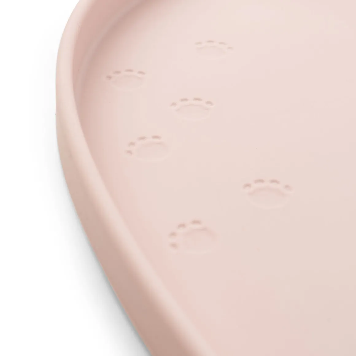 Dækkeservietten i silikone har en praktisk lille kant foran og en endnu højere kant på siden og bagsiden for at stoppe spildt væske og mad. Den er nem at tørre af eller rengøre i opvaskemaskinen og har en skridsikker underside.