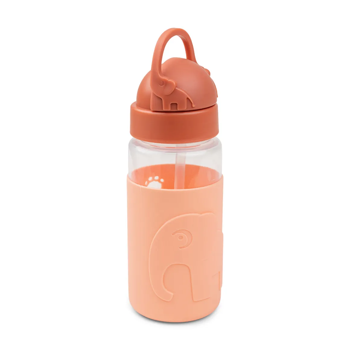 Silikoneovertrækket er præget med Elphee og har søde huller formet som Elphees fodaftryk. De papaya-farvede toner omfavner flasken.