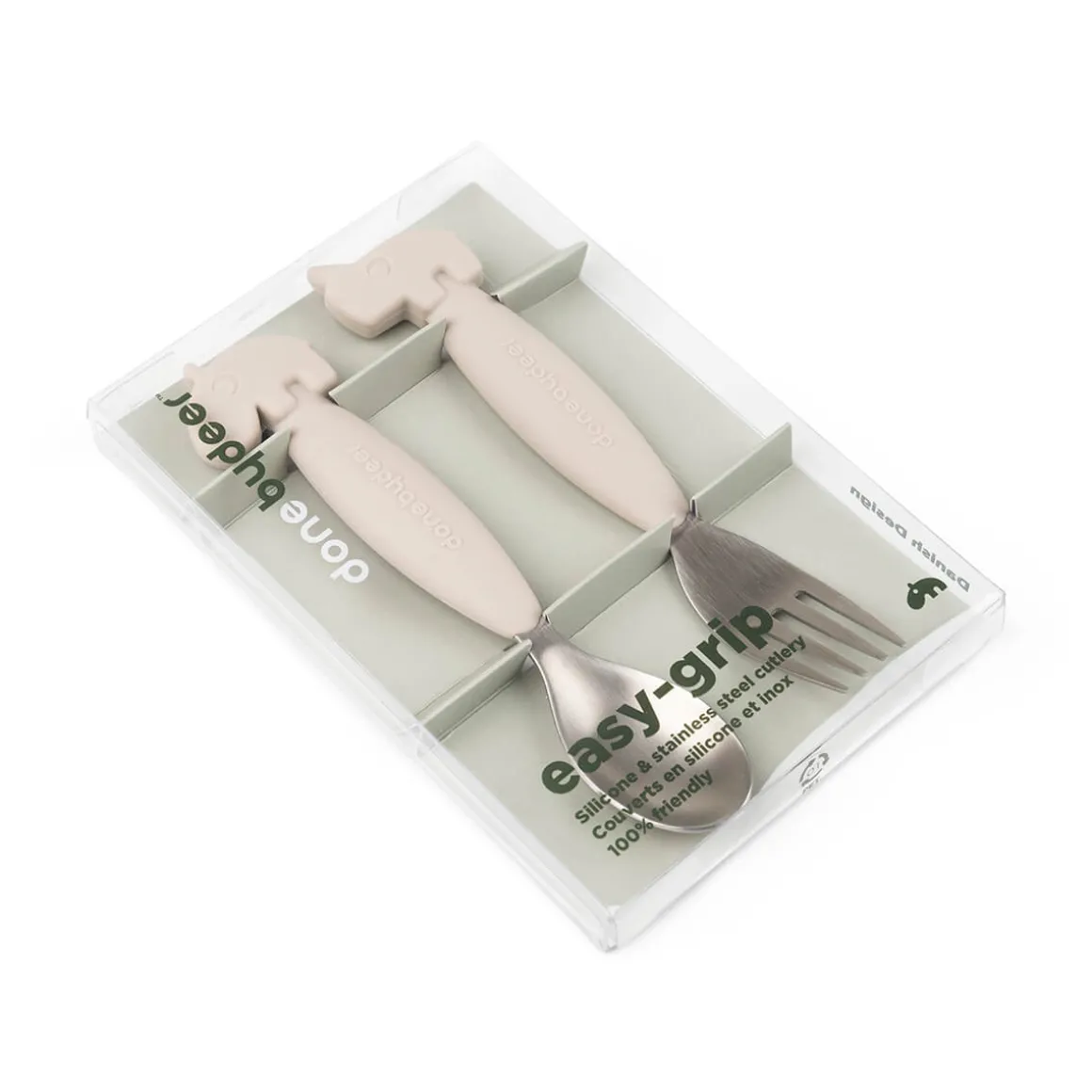 Deer friends Easy-grip bestik med ske og gaffel sikrer et stabilt greb og hjælper med at holde små spisere fokuseret på opgaven. At have de perfekte redskaber er afgørende for at gøre det sjovt at lære at spise selvstændigt.