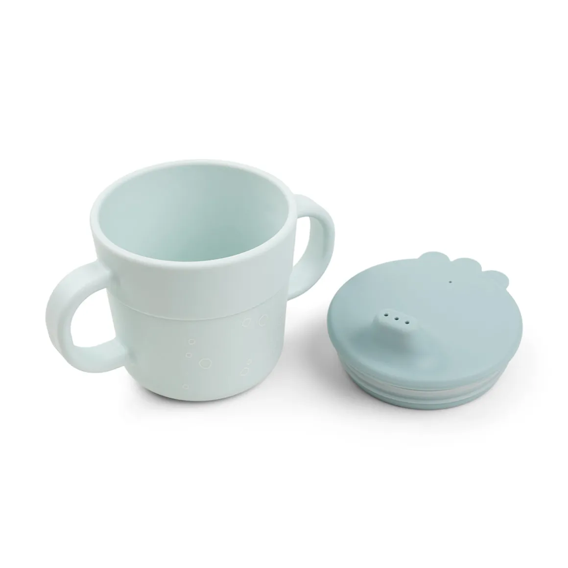 Det blå spisesæt har et sødt motiv af Wally på undervandsekspedition. Koppen med 2 hanke og tud er dekoreret med muslingeskaller og søstjerner. Den mørkeblå giver en fin tofarvet detalje, og skålen har seje bølger. Lad dit barn dykke ned i det.