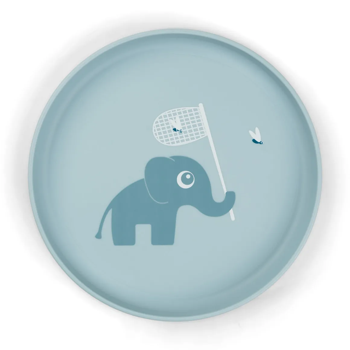 Den blå tallerken er trykt med et dejligt motiv af den muntre elefant Elphee, der fanger ildfluer med et net. Lad dit barn deltage i det sjove, mens det jager nye måltidsoplevelser. Basens mørkeblå farve giver en fin tofarvet detalje.