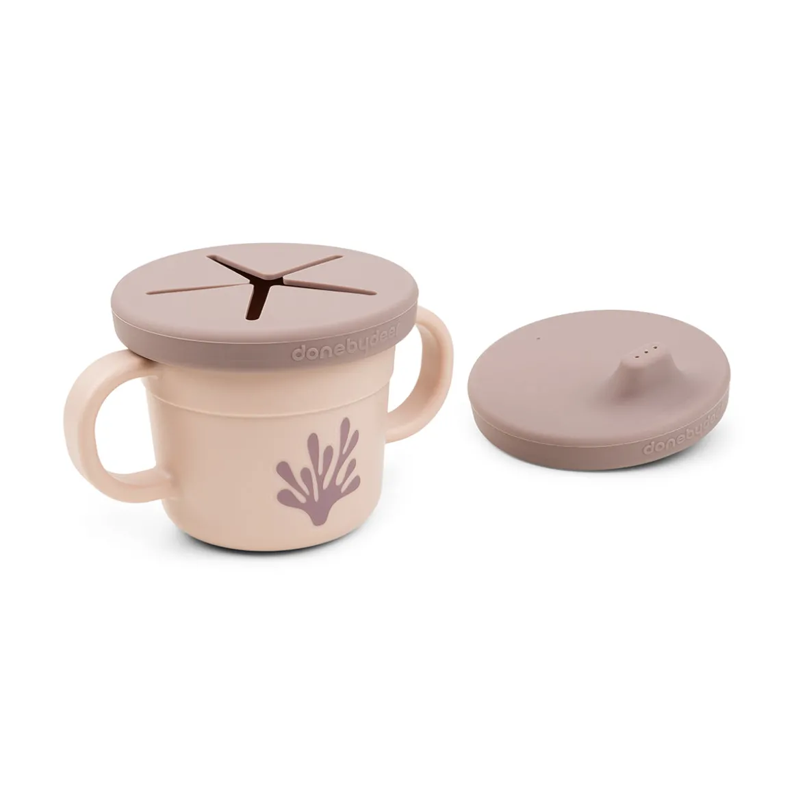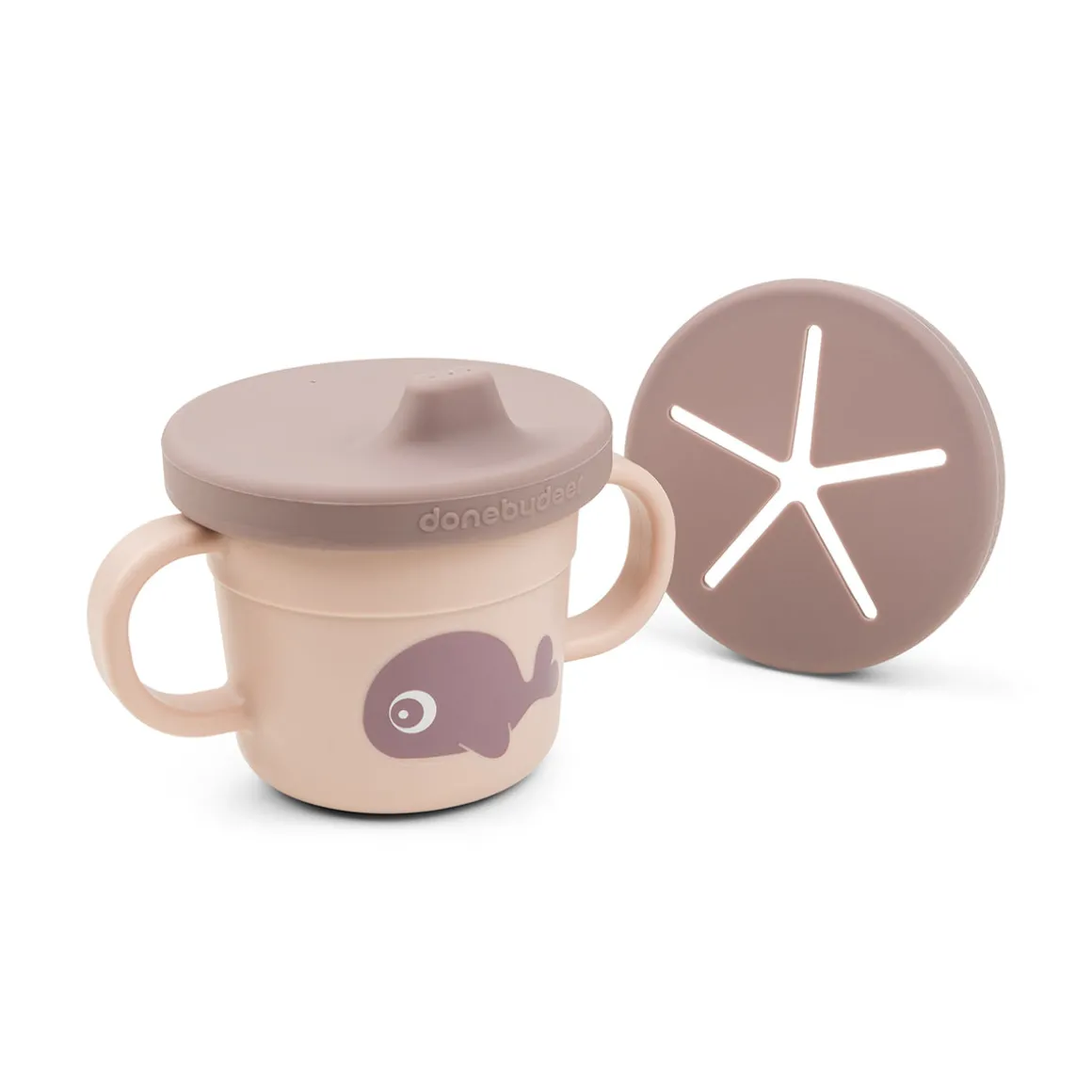 Foodie tud/snack kop sæt er perfekt til de mindste. Snacklåget holder snacks inde, perfekt til bilen eller barnevognen. Tudelåget er spildsikkert, og når dit barn er klar, kan du bruge koppen uden låg. De to håndtag giver et stabilt greb.