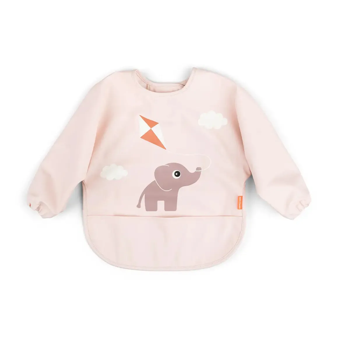 Denne søde, pudderfarvede hagesmæk har et sødt motiv af Elphee, der flyver med en drage. Hagesmækken sikrer renlighed med sin vandtætte overflade, der beskytter tøjet mod spild og snavs. Tilføjelsen af beskyttende ærmer giver ekstra dækning og holder dit barns tøj sikkert.