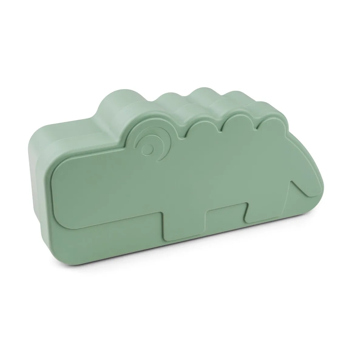 Det er nemt for små hænder at åbne og lukke den praktiske krokodilleformede madkasse, og låget kan bruges som tallerken. Den søde madkasse tåler opvaskemaskine.