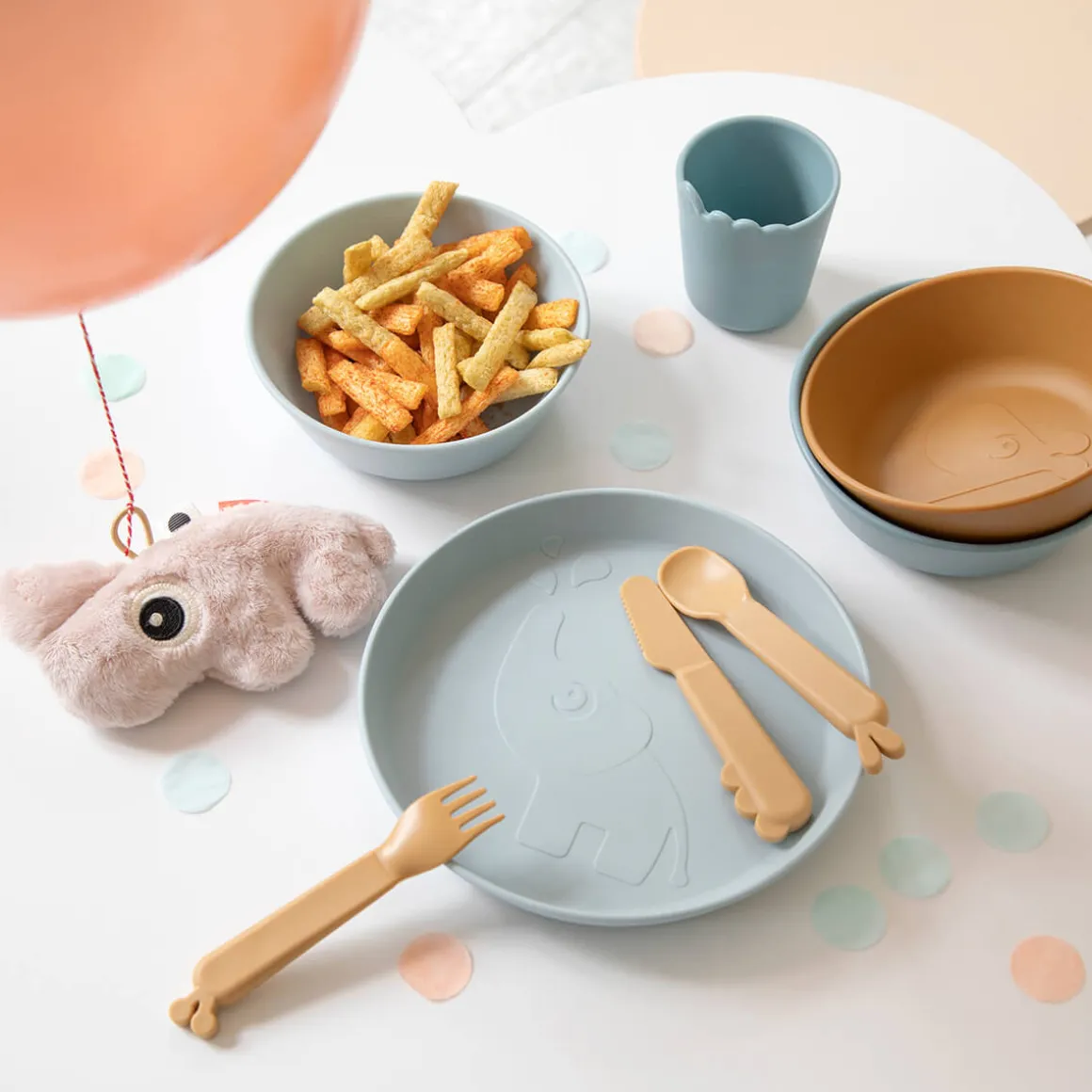 De genanvendelige kopper til børn er fremstillet i Danmark. Efter utallige familiemåltider, fester og picnics kan kopperne sorteres som hård plast og genbruges til nye produkter i hverdagen.