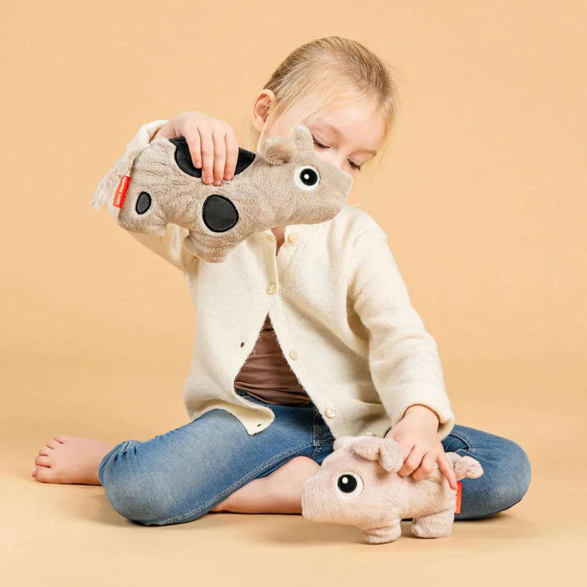 Dotti is a super-soft cuddle toy, ready to be your child’s trusted companion for cuddles, naps, and adventures. With an open eye on one side and a closed eye on the other, Dotti’s design inspires curiosity while engaging little hands and minds. The soft sand colour with contrasting details gently stimulates your child’s visual development.