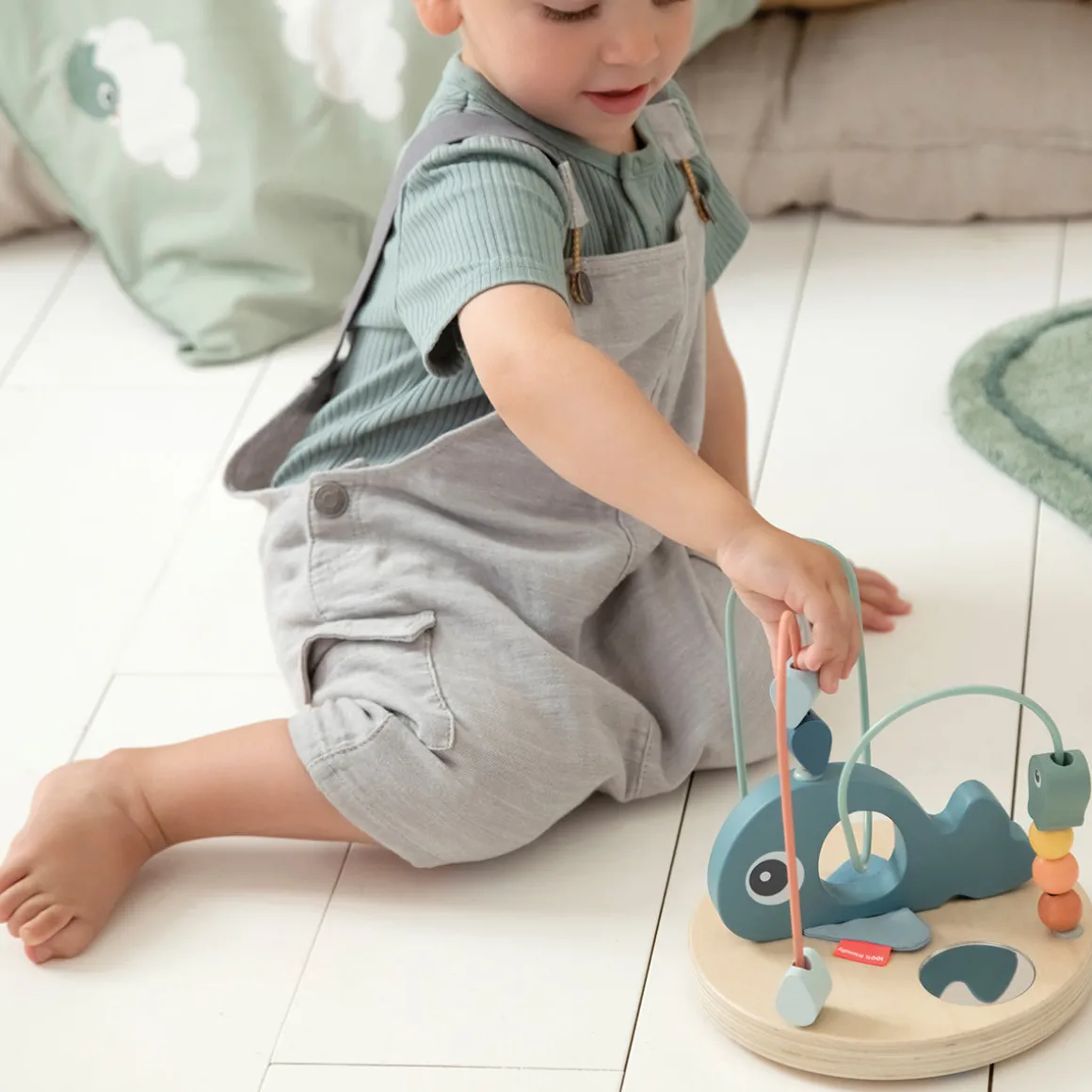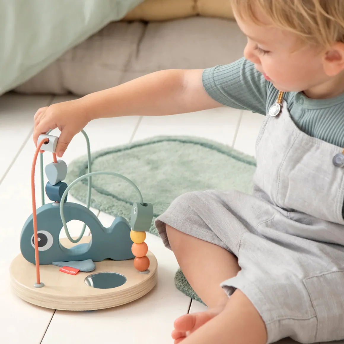 Med Kuglelabyrinten i træ kan dit barn øve finmotorik og pincetgreb, mens det flytter de små perler og fisk fra den ene ende til den anden. Hvalen og havets elementer inspirerer dit barn til at være nysgerrig på livet under vandet.
